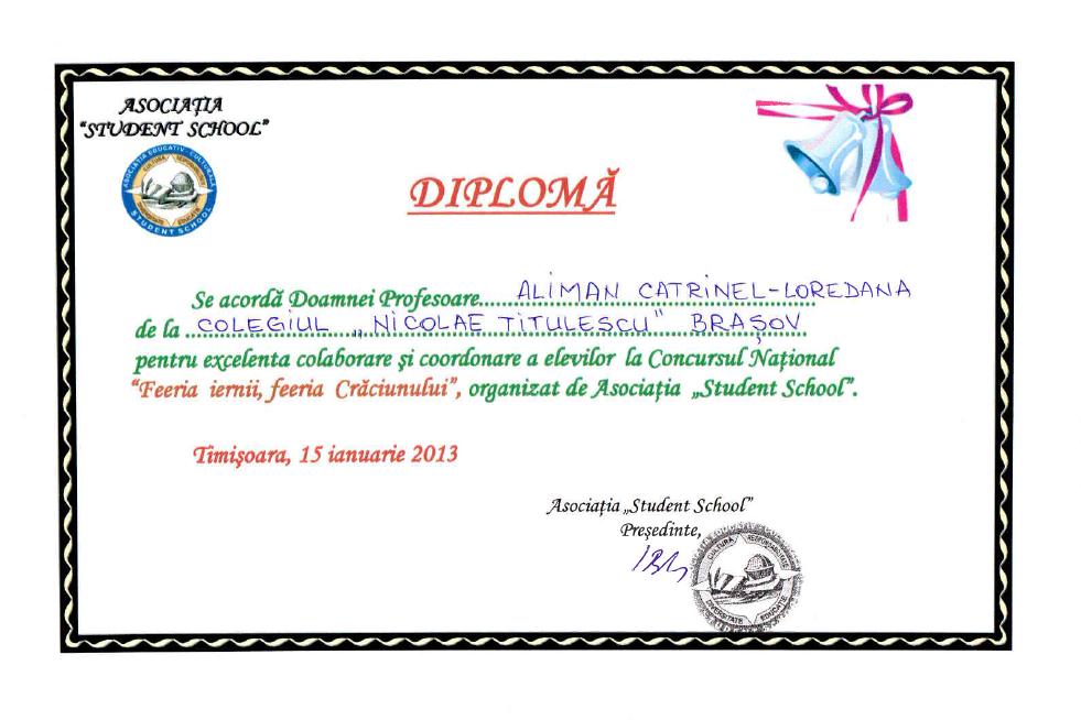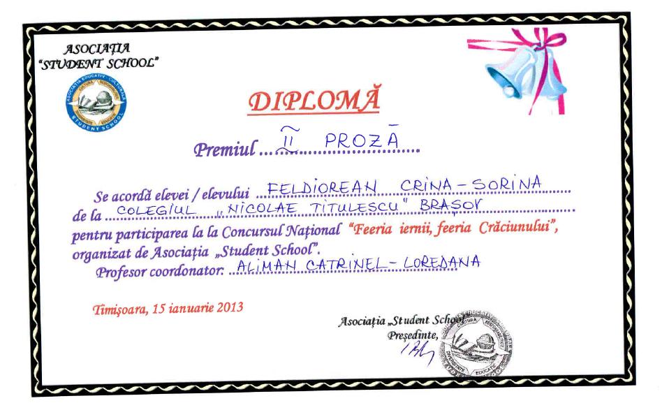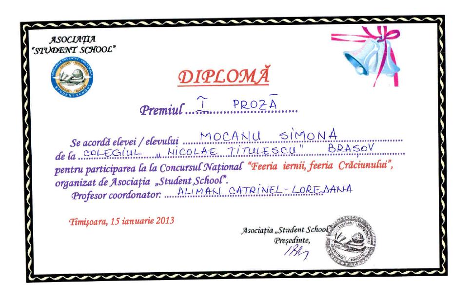 31 | Olariu Alexandra Ionela | Limba și literatura română | Concursul Colocvii eminesciene, ediția a XI-a, Constanța, secțiunea Creație literară, traducere lb.engleză | Premiul III | 2019 |