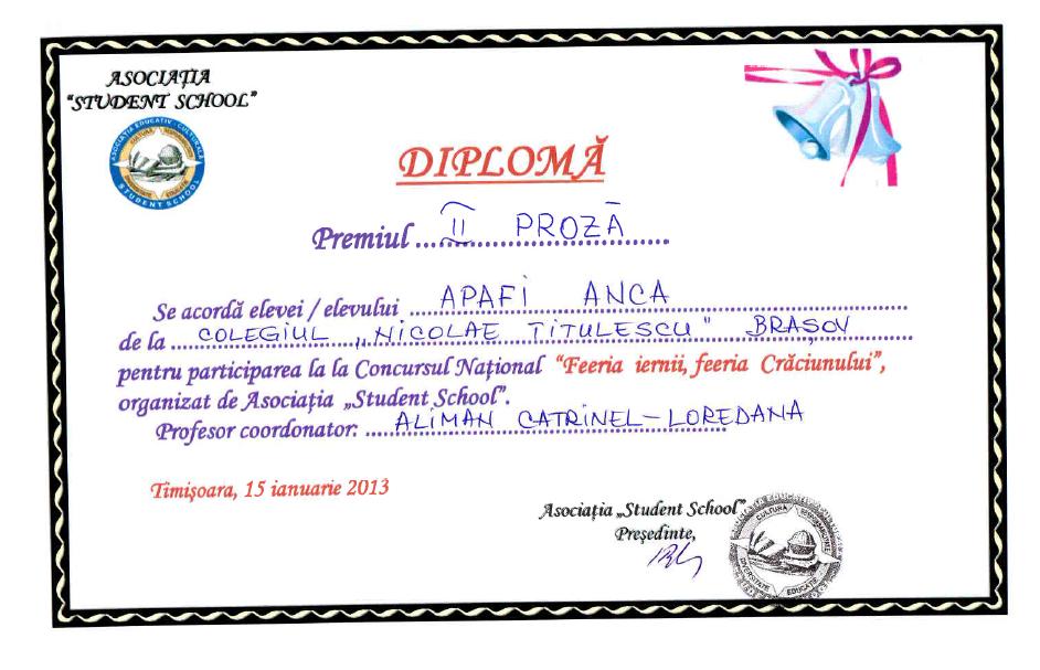12 | Herghelegiu Stefan, Enache Daria, Iosub Ana, Dumitroiu Gratiela, Boricean Briana Sorina, Stoica Lara-Andreea, Stancu Rares Mihai | Limba germana moderna | Deutschlernen ohne Grenzen/Platforma Etwinning | Sigla nationala/europeana | 2021 |