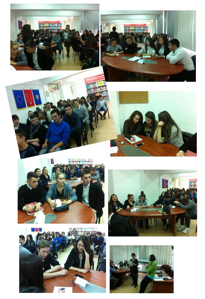 Împărţiţi în echipe de câte 3, pe niveluri de clase, filologii şi cei de la socio- uman au răspuns celor trei seturi de întrebări despre viaţa şi opera lui Mihai Eminescu. Ei au fost susţinuţi, din public de colegii lor de la profilurile matematică-informatică şi ştiinţele naturii.