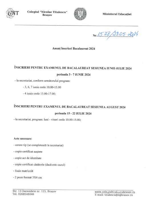 COLEGIUL ”NICOLAE TITULESCU” BRAȘOV | ||||