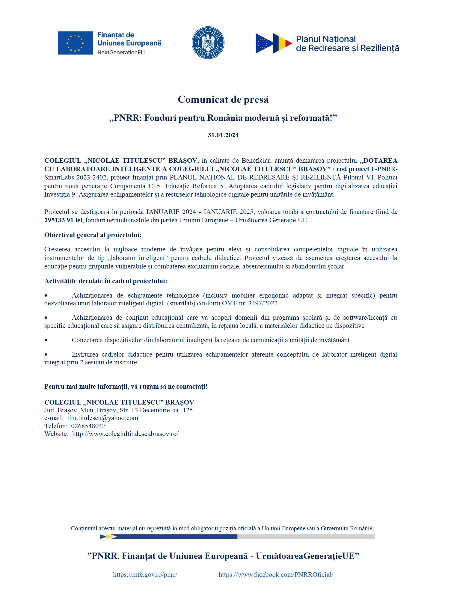 Colegiul Nicolae Titulescu BrasovStr. 13 Decembrie nr.125Telefon: 0268/548046